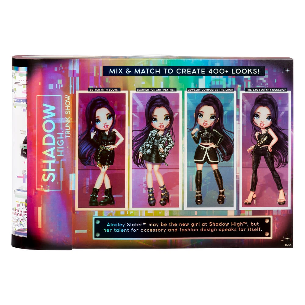Laat de stylist in jezelf los en creëer meer dan 400 looks met modepop Ainsley Slater in deze Rainbow High Shadow High Trunk Show set.